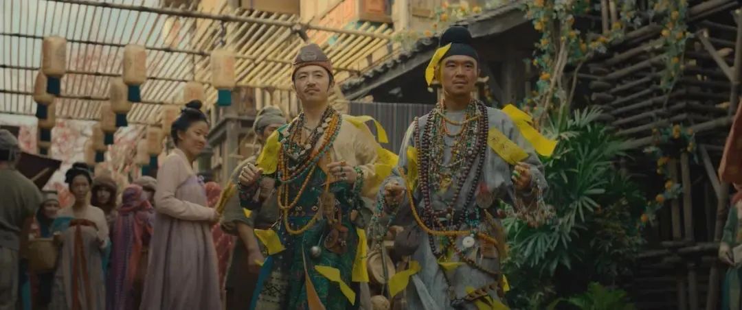 大鹏的聪明还表现在对书中苏谅的改编上。小说中的苏谅是一位“干瘦的老者”,考虑到当时李善德42岁,那苏谅估计超60岁了。在电影中,苏谅由白客饰演,变成了一个被兄长认为“不是做生意的料”的年轻人,一心想证明自己。电影《长安的荔枝》中将大鹏饰演的李善德、白客饰演的苏谅和庄达菲饰演的阿僮组成了一个运荔枝过程中的“三人组”,正好对应了三人2023年在电影《年会不能停!》中的“职场三人组”。